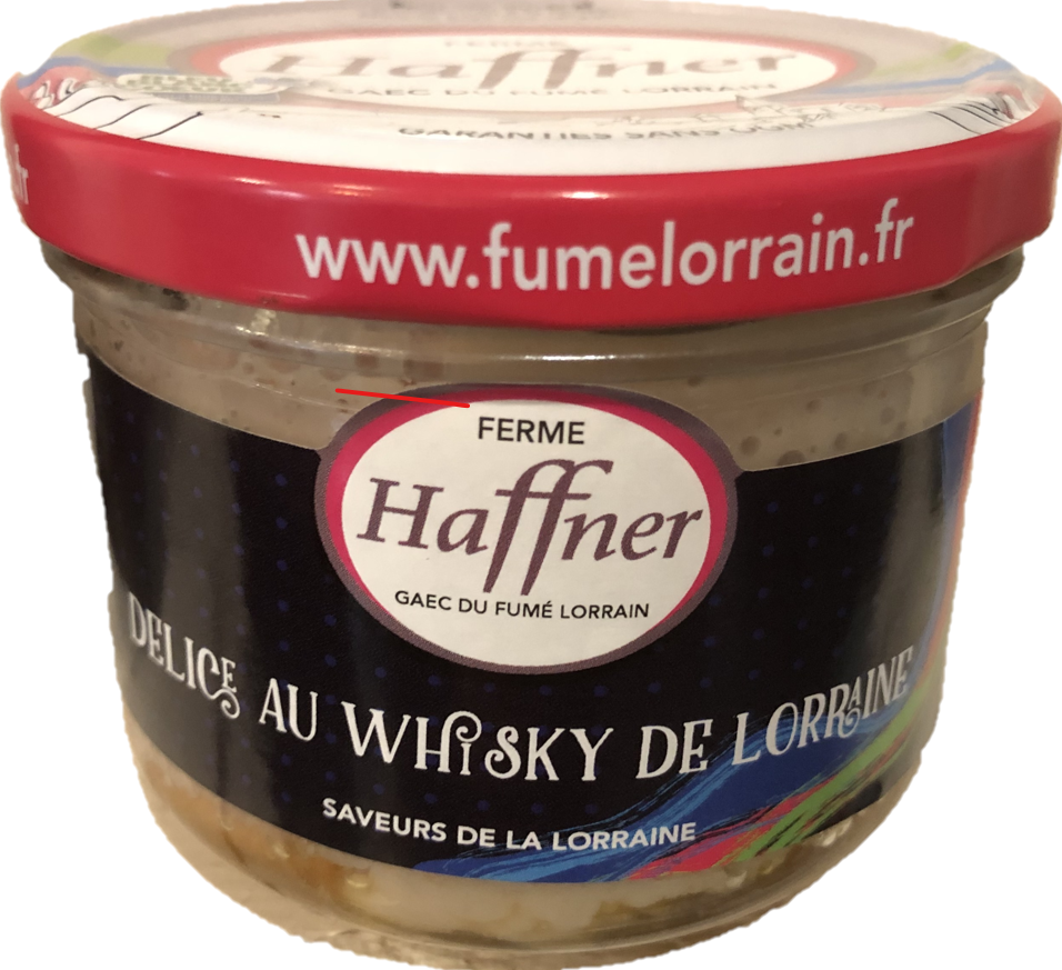 Ingrédients : Viande de porc, foie de porc (20.8%), sel fin, plasma de porc, arômes, vinaigre, dextrose, poudre de jus de blette, ail, échalote, poivre, ferments, whisky